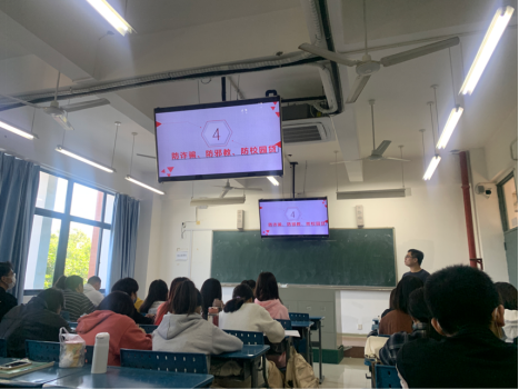在疫情防控有关的预防诈骗、预防犯罪教育工作中,引导员工在防疫期间不信谣不传谣。以及对思明区罗宾森小区火灾情况进行了通报,让同学们学习了火灾相关知识、安全疏散和自救逃生技能。坚决遏制“小火亡人”火灾事故发生。然后进行“三防”防诈骗校园贷、防宗教渗透、防校园欺凌的安全教育,以案例分析、专项讨论等形式,加深同学们对其危害性的深刻认识。