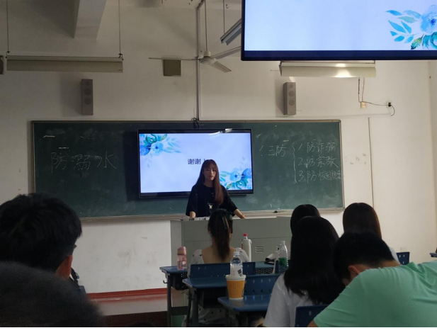 班会最后,辅导员王昕老师为同学们讲解了防溺水的内容并且对本次班会进行总结。