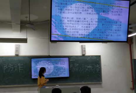 图五:宣传委员讲关于防诈骗,校园贷的内容