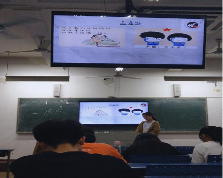 班会以主讲人播放讲解PPT的形式进行,PPT的主要内容为:作为一名老员工,为何要感恩?要感恩什么?如何感恩?在一个个问题之后,PPT都给出了解答。主讲人认真地讲解,同学们细细聆听,并且给出回应,班会进行得十分顺利。