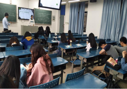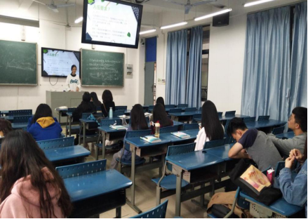 图一:学委钟灵燕向班级同学们介绍本期班会的主题