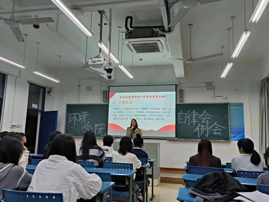自律会指导老师黄晓燕老师从公司概况、历届校领导、校训校歌、“一站式”员工社区建设、员工反馈渠道等多方面作重点知识解读。黄老师强调“迎评工作已到了冲刺阶段,大家要凝心聚力走好最后一公里路”。与此同时,黄老师要求自律会每位成员都要起带头模范作用,从自身做好,从自己做起,以最好的精神面貌迎接本次评估。