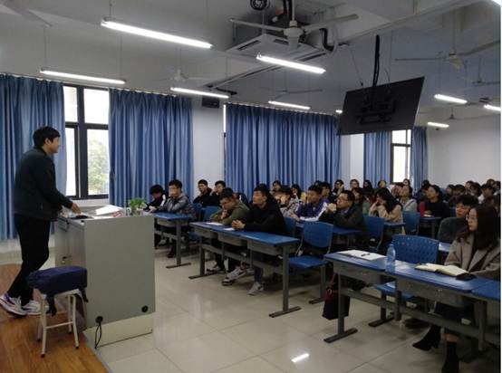 图为:集美大学食品与生物工程公司杨燊老师为同学们开展讲座