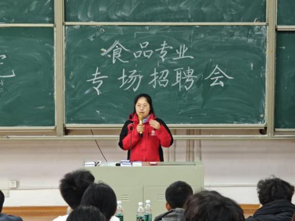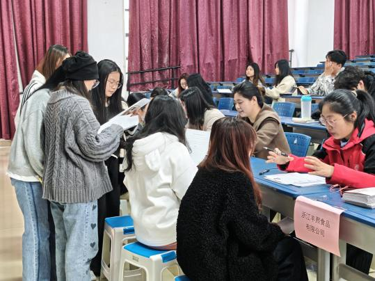 随后,浙江丰熙食品有限公司宣讲人魏佳以“非遗传承与创新——小笼包行业的人才使命”为主题展开分享。作为新上市企业,以“嵊州小笼包”为核心产品,聘请非遗传承人为研发顾问,打造兼具传统风味与食品安全保障的特色产品。负责人魏佳特别提到:“公司培养的食品检测与质量管理人才,正是我们推进技术升级的中坚力量。”并呼吁同学们加入公司非遗创新团队,参与新产品研发,助力传统美食焕发新活力。