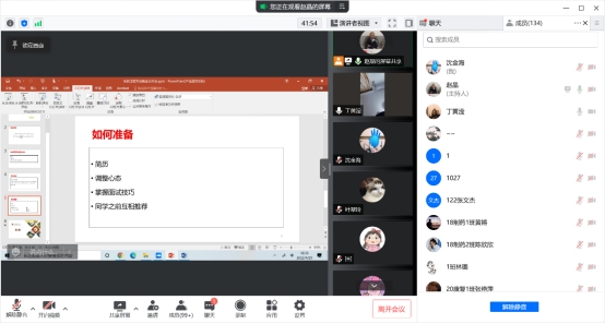 辅导员和专业老师总结了前段时间的就业工作安排,着重强调了毕业生就业推荐表、就业意向摸排、三方协议签订等就业手续事宜,同时从就业政策、历年就业数据、就业信息的获取等方面进行详细讲解。