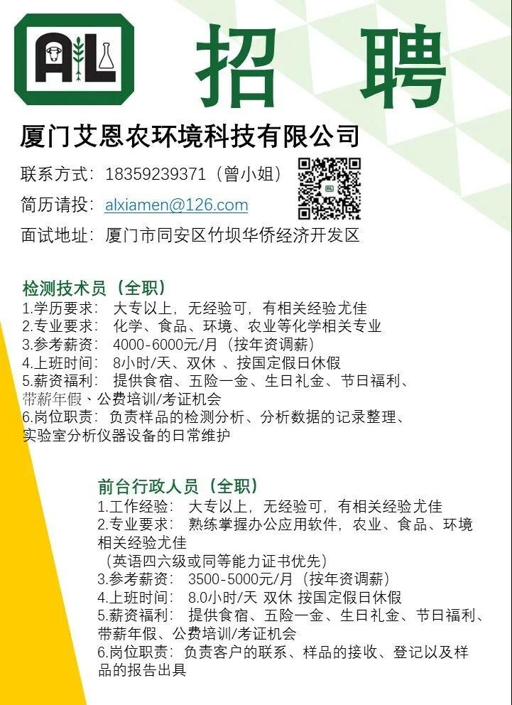 厦门艾恩农环境科技有限公司于2017年12月11日创办,法定注册地址为厦门市同安区竹坝农场新村289号之二;经营领域为一般项目:农业科学研究和试验发展、环境保护监测、技术服务、技术开发、技术咨询、技术交流、技术转让、技术推广。许可项目:检验检测服务。单位性质:有限责任公司(外商投资、非独资),注册资本1000万人民币,还有着同事很好、价值观正、发展空间大、交通便利、机会多等多种福利。自公司成立以来,其服务支持能力、服务效率与品质不断提升,不断创新。
